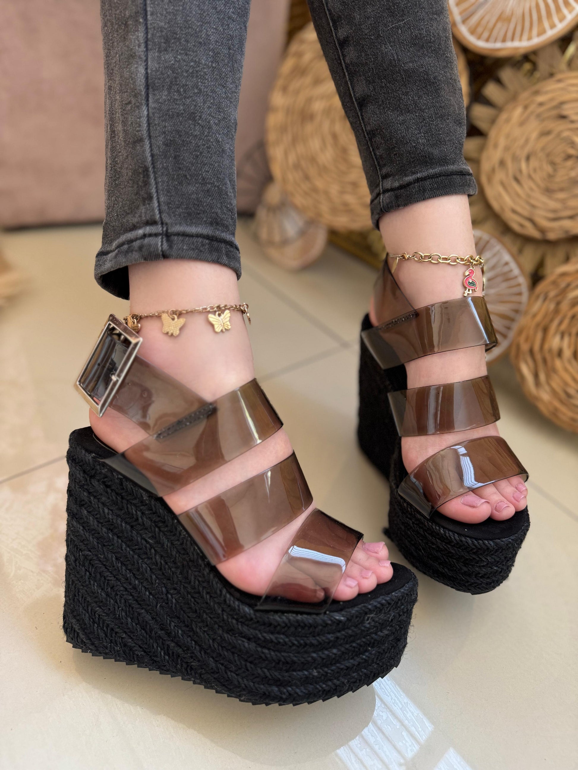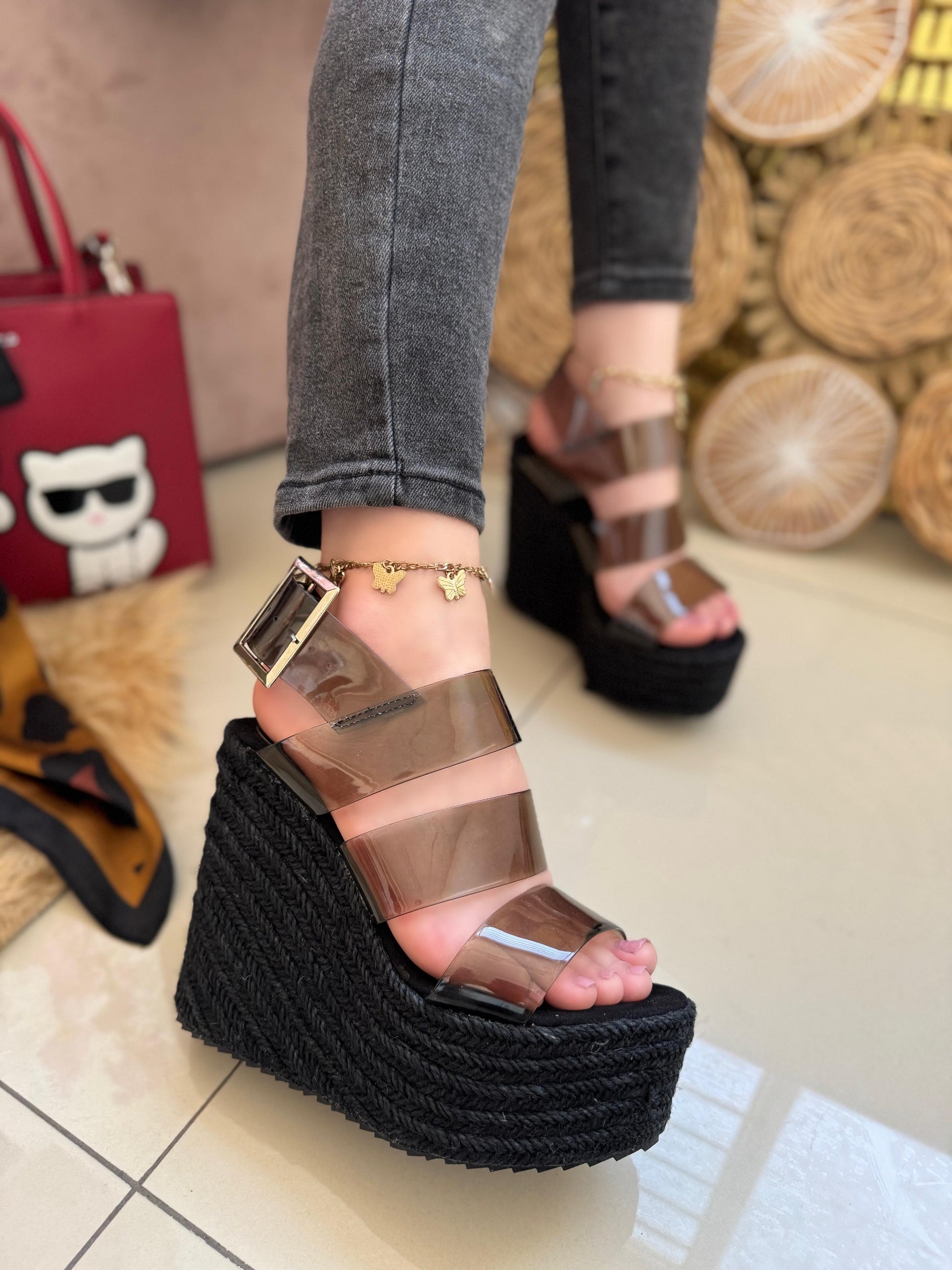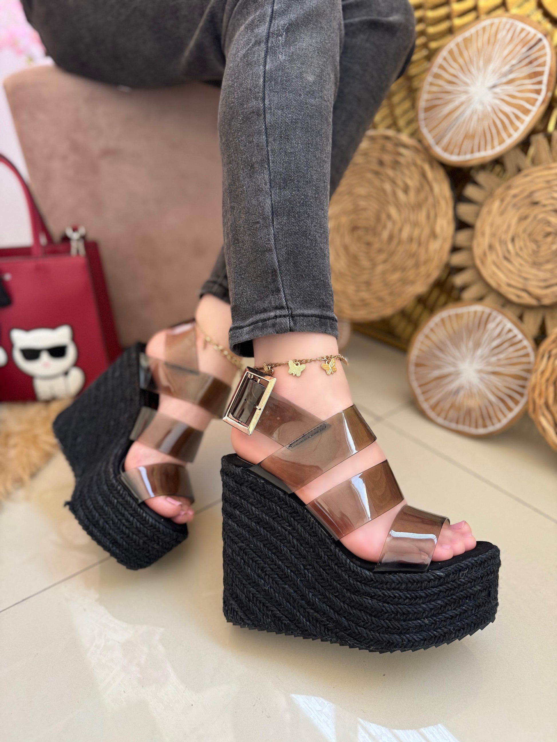 Estas plataformas con tiras transparentes tipo vinil son el “must-have” del momento. Ligeras, versátiles y súper combinables, se adaptan a cualquier outfit, dejando el protagonismo a tus pies. ¡Ideales para estilizar sin recargar!