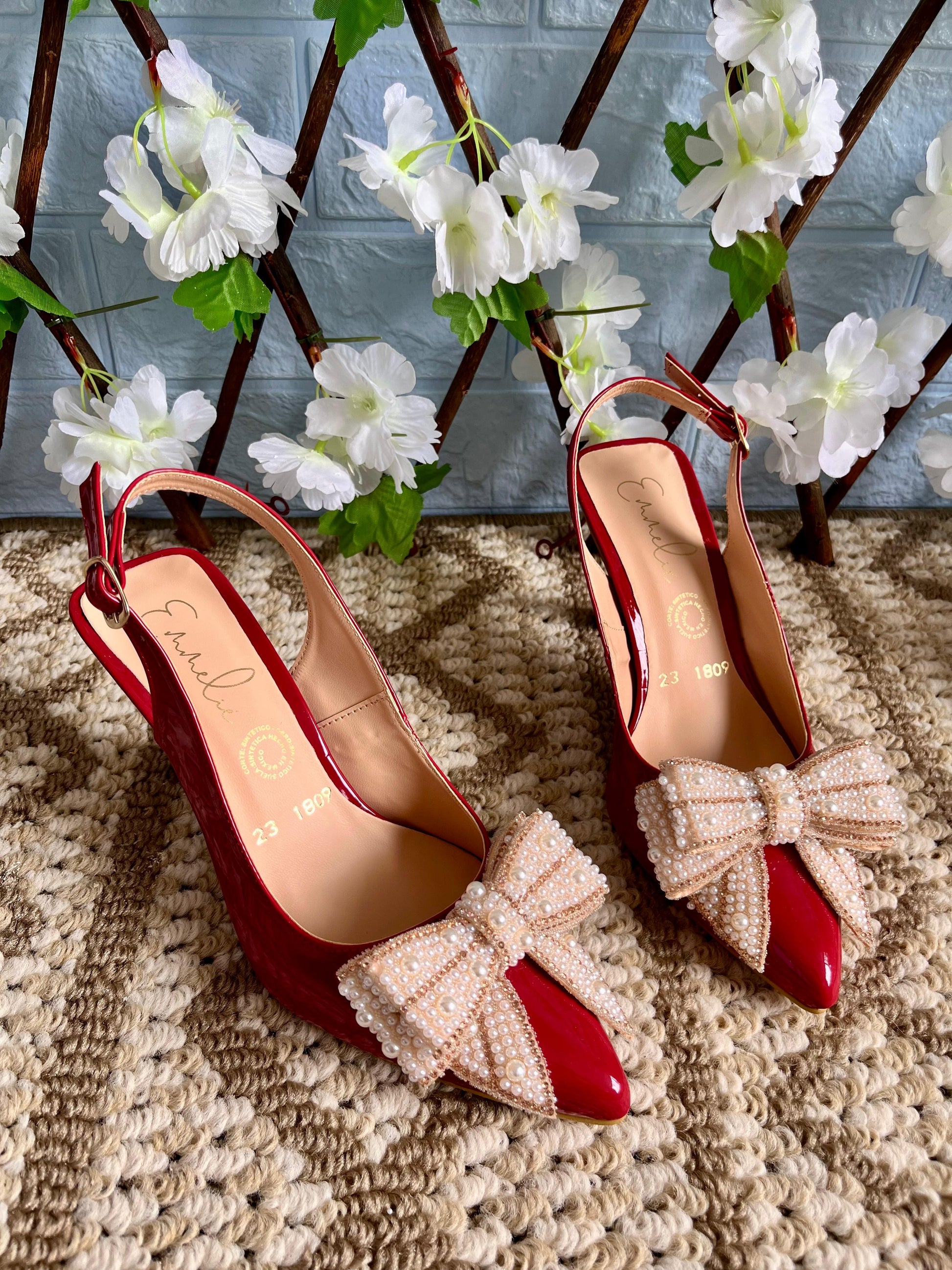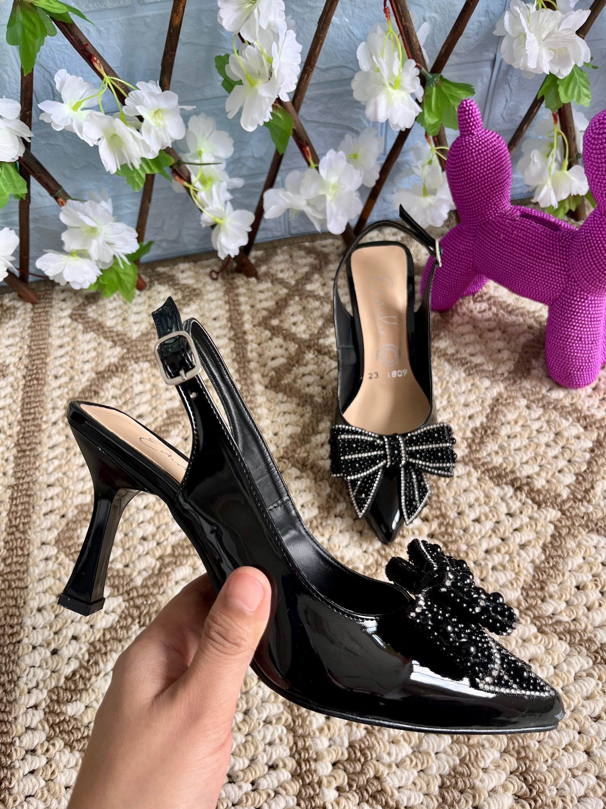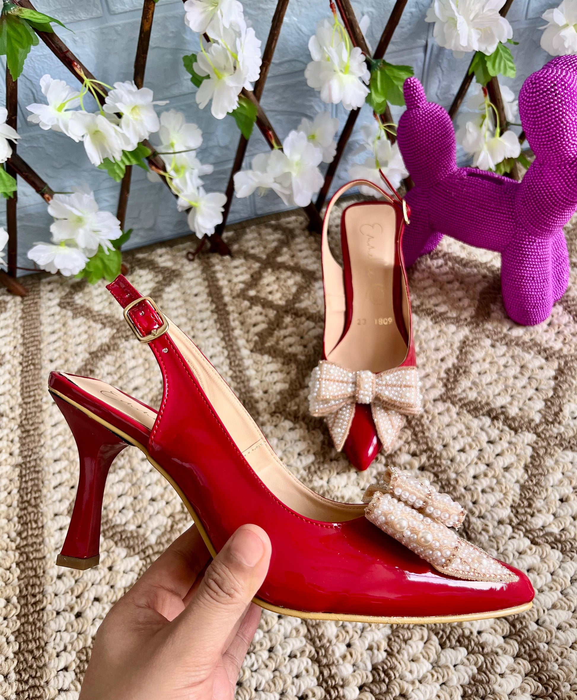 Deja que tus pies hablen por ti. Estas zapatillas nude de charol son la definición de elegancia moderna. Su acabado brillante y su delicado moño adornado con perlas añaden un toque romÔntico y sofisticado que las hace perfectas para ocasiones especiales, eventos formales o una cita inolvidable.