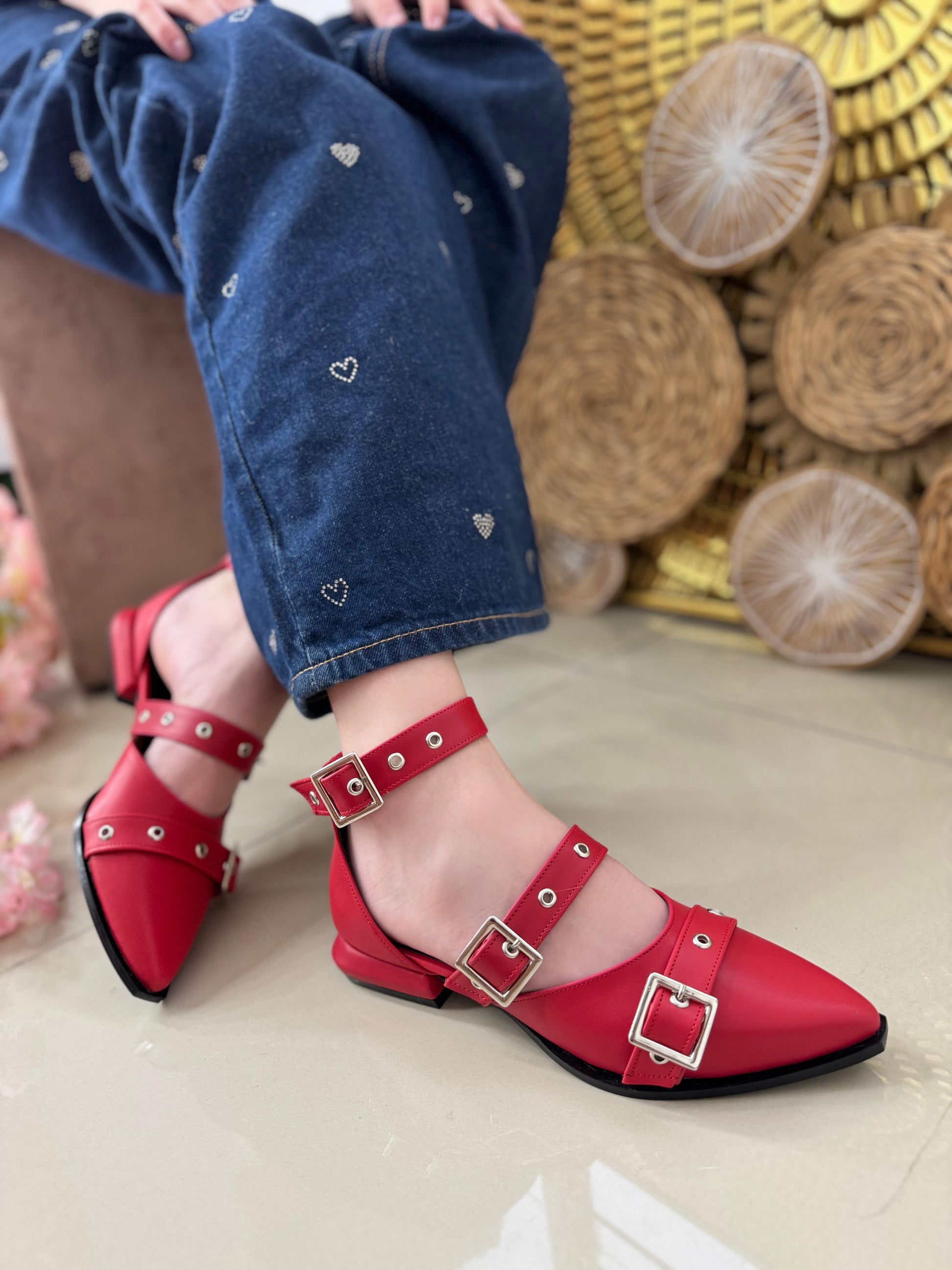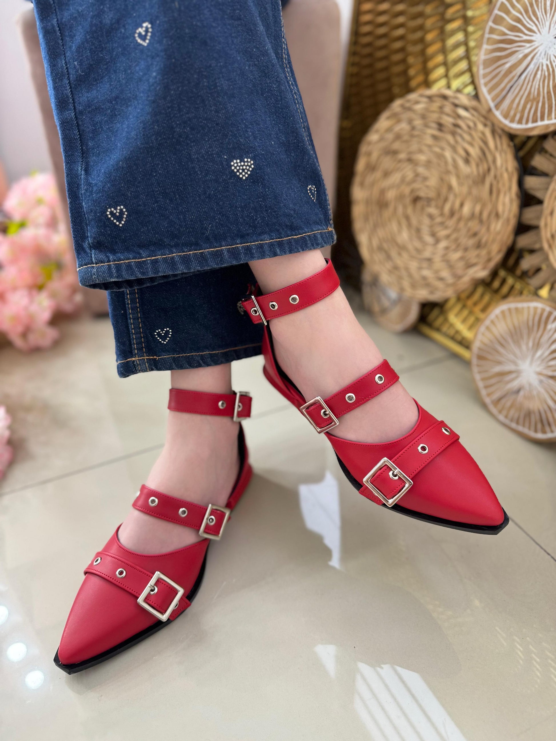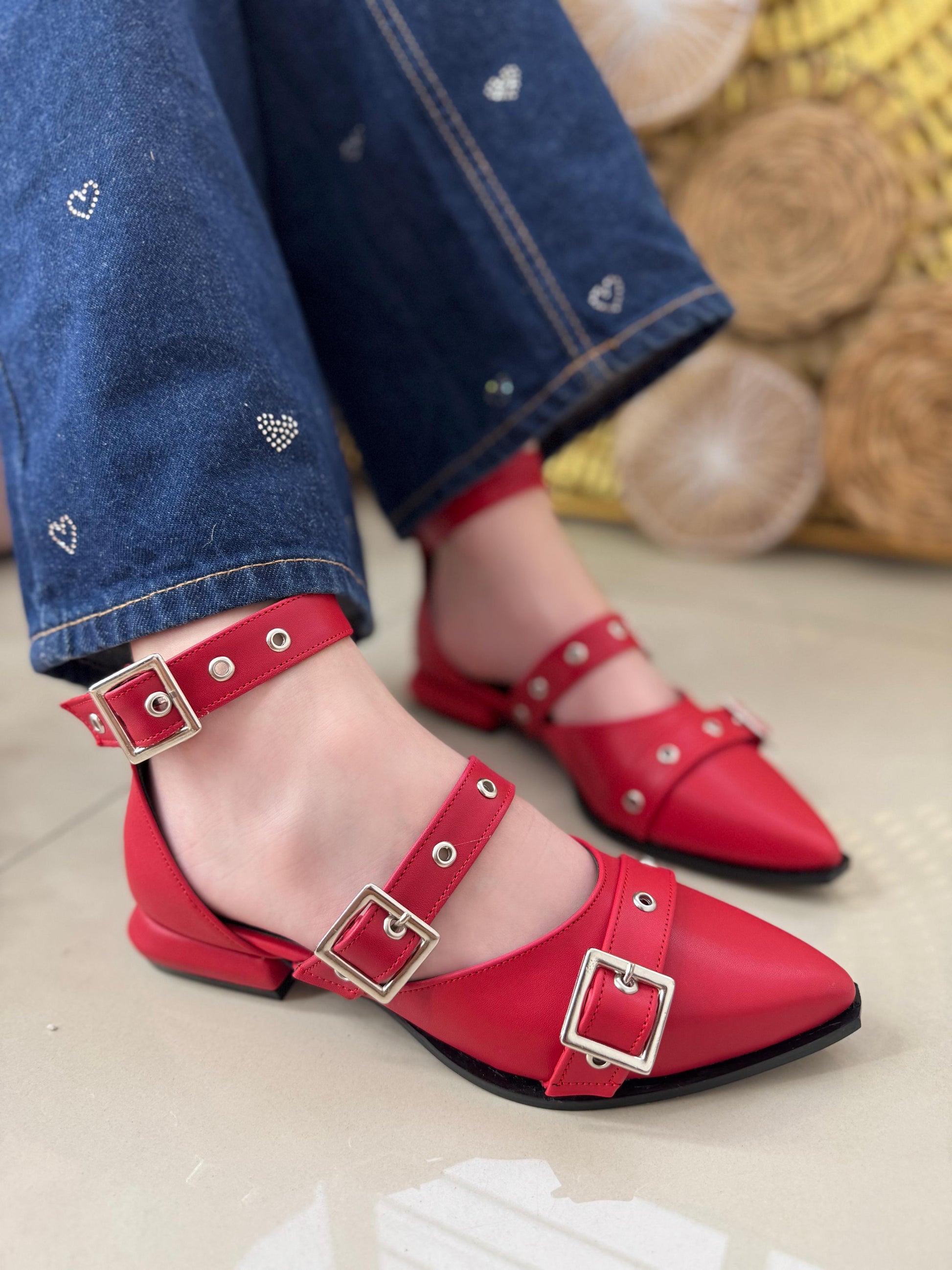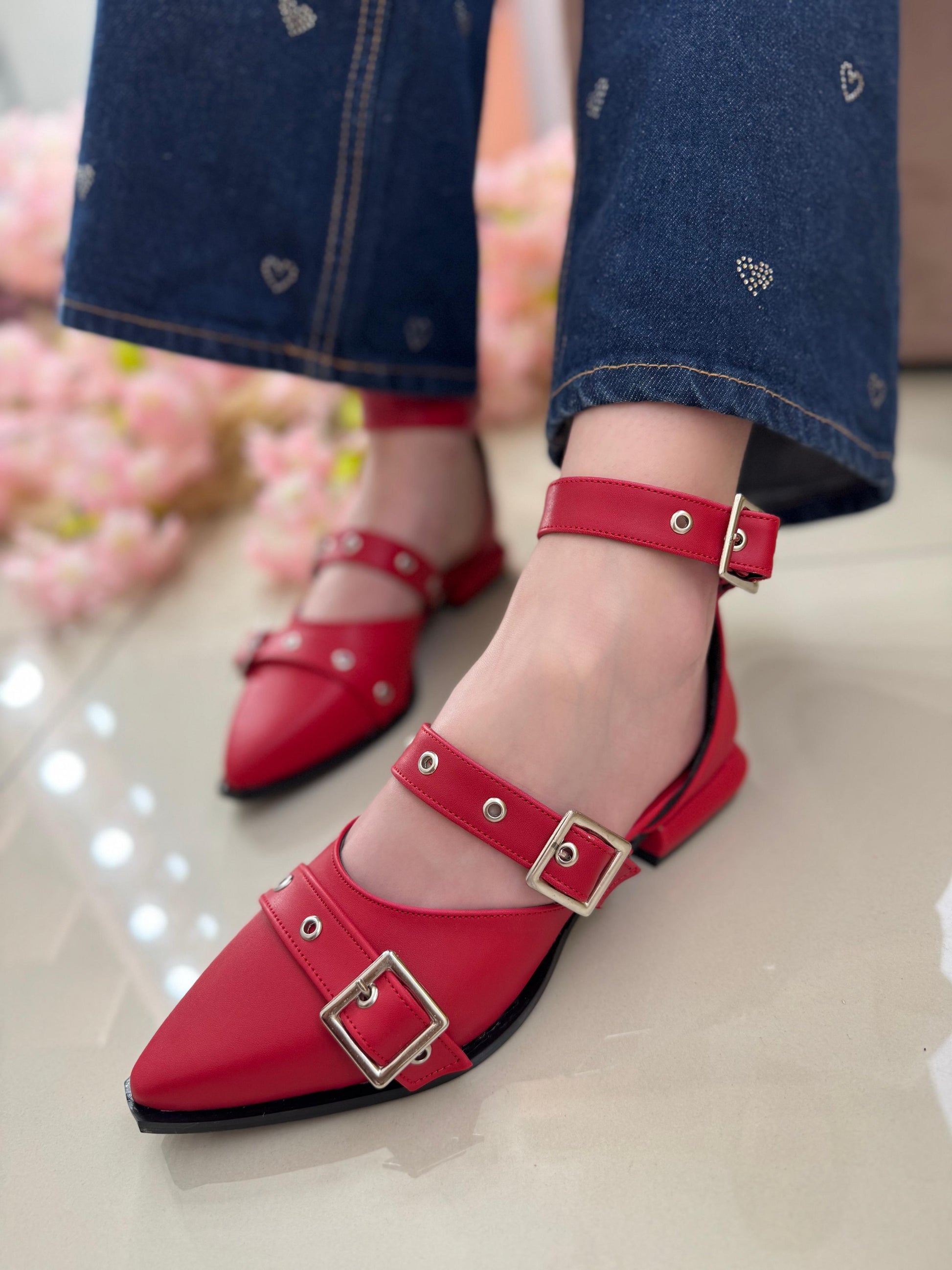 Dale un giro audaz a tu estilo con estos flats de charol con punta fina y hebillas metálicas. Su diseño combina a la perfección la sofisticación clásica con un toque rebelde y moderno, haciéndolos ideales para quienes buscan destacar con personalidad.