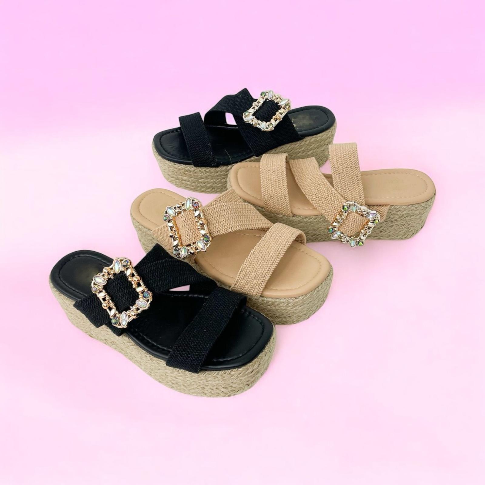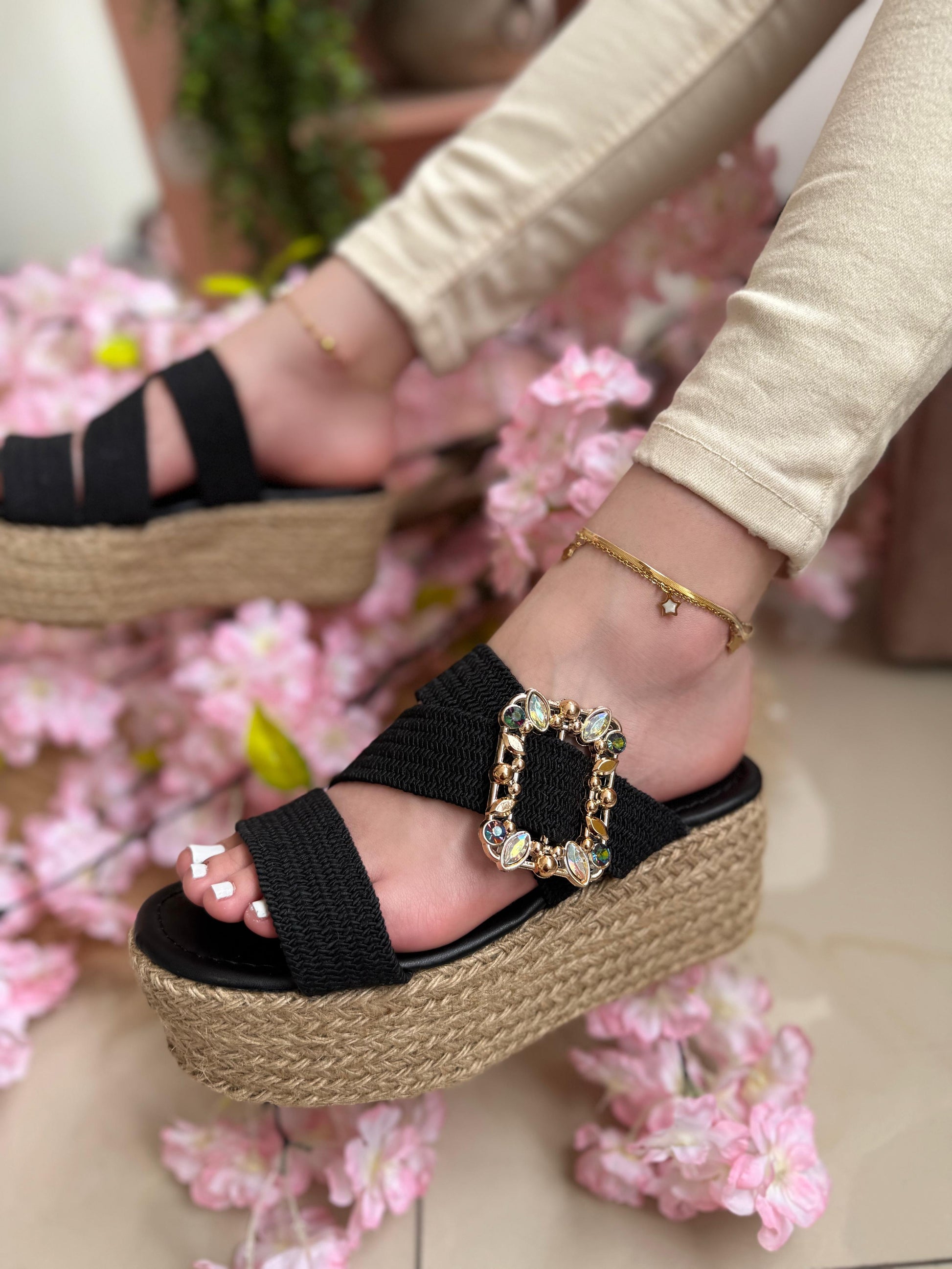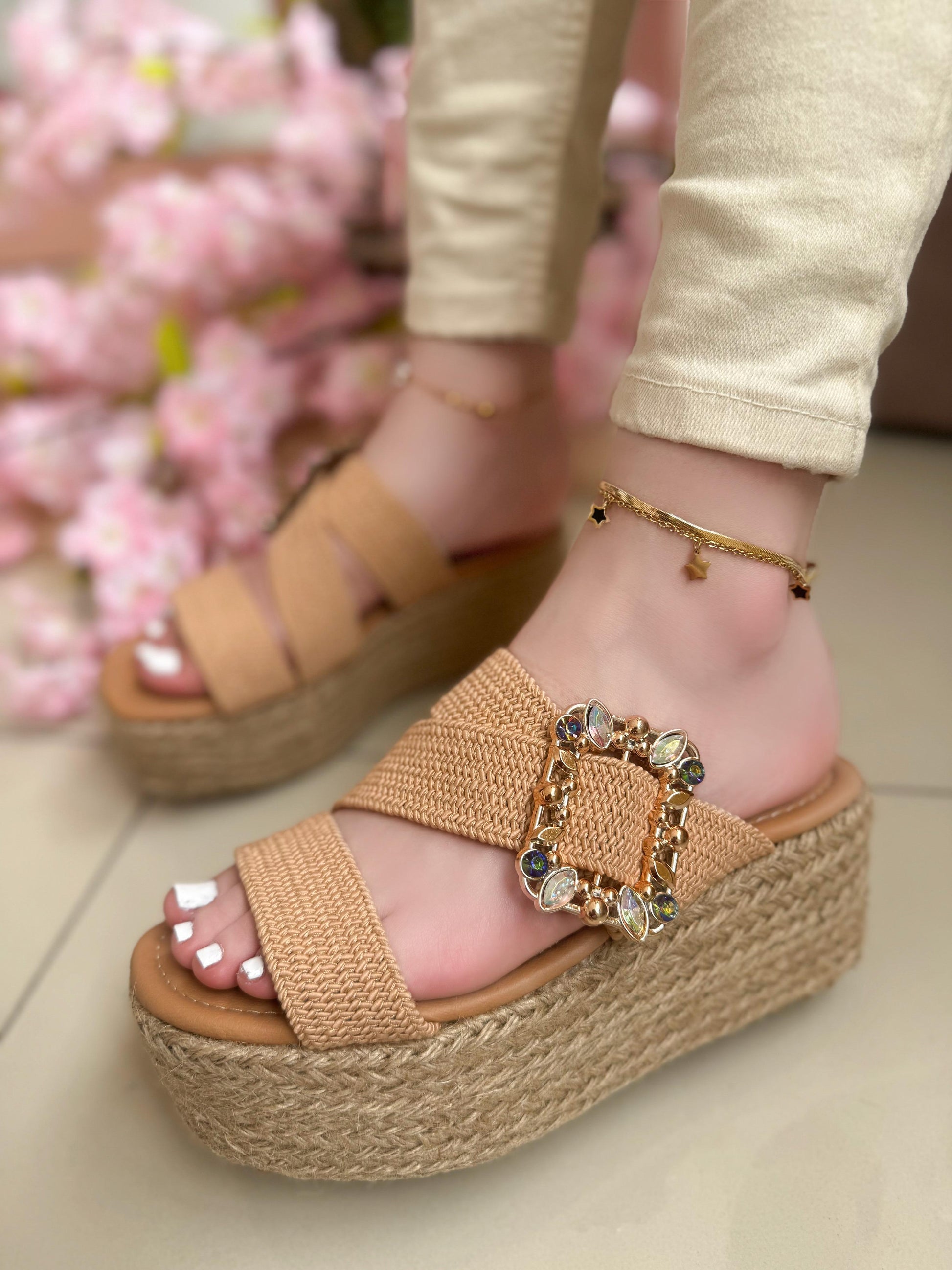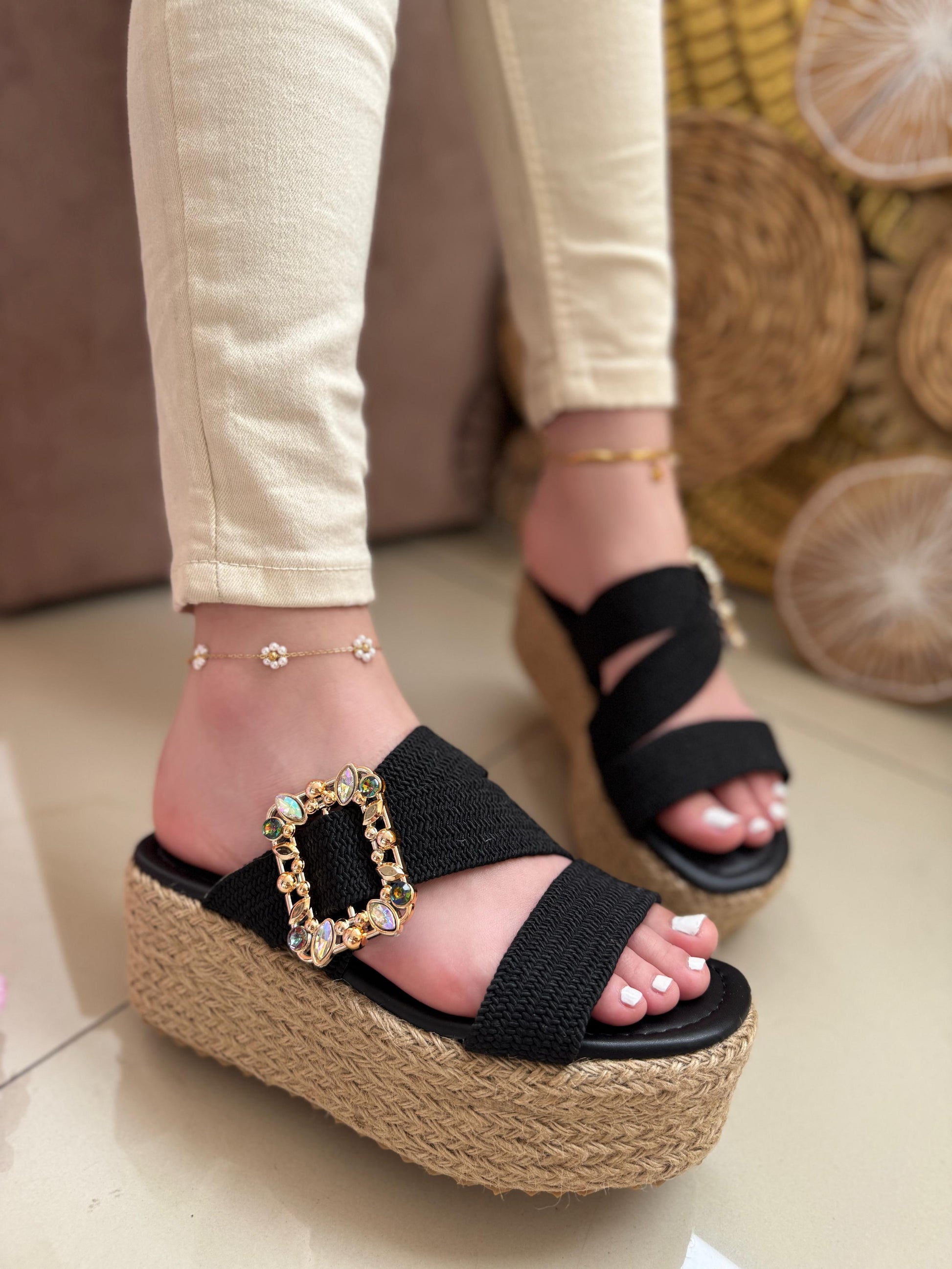 Luce radiante y a la moda con nuestras sandalias de plataforma de yute, el calzado perfecto para realzar tu estilo con comodidad y sofisticación. Diseñadas con una suela de yute trenzado, brindan un toque bohemio y chic, ideal para cualquier ocasión.