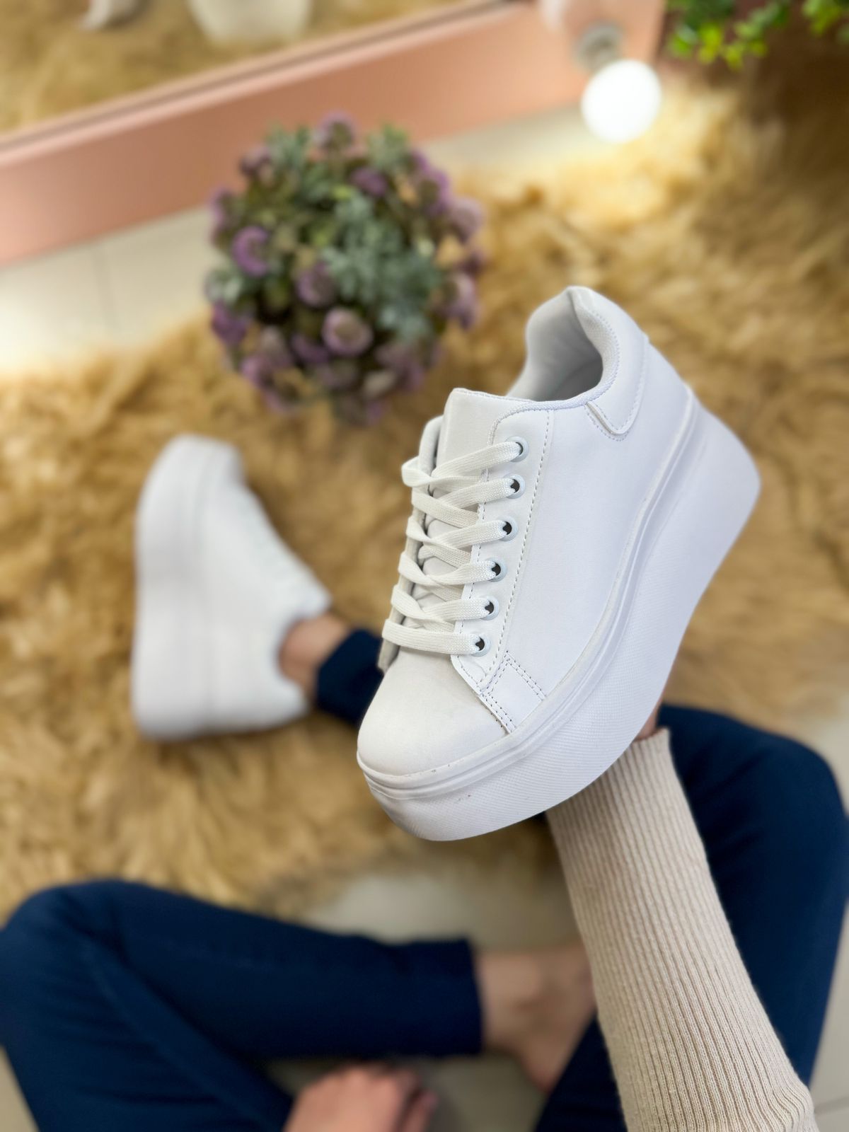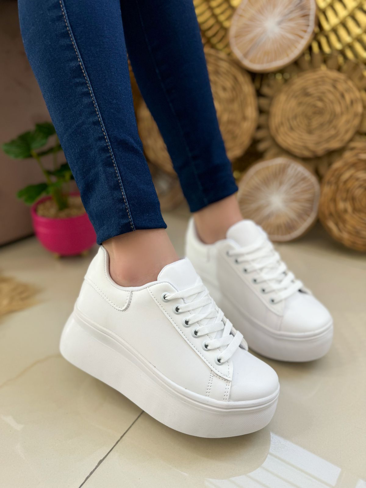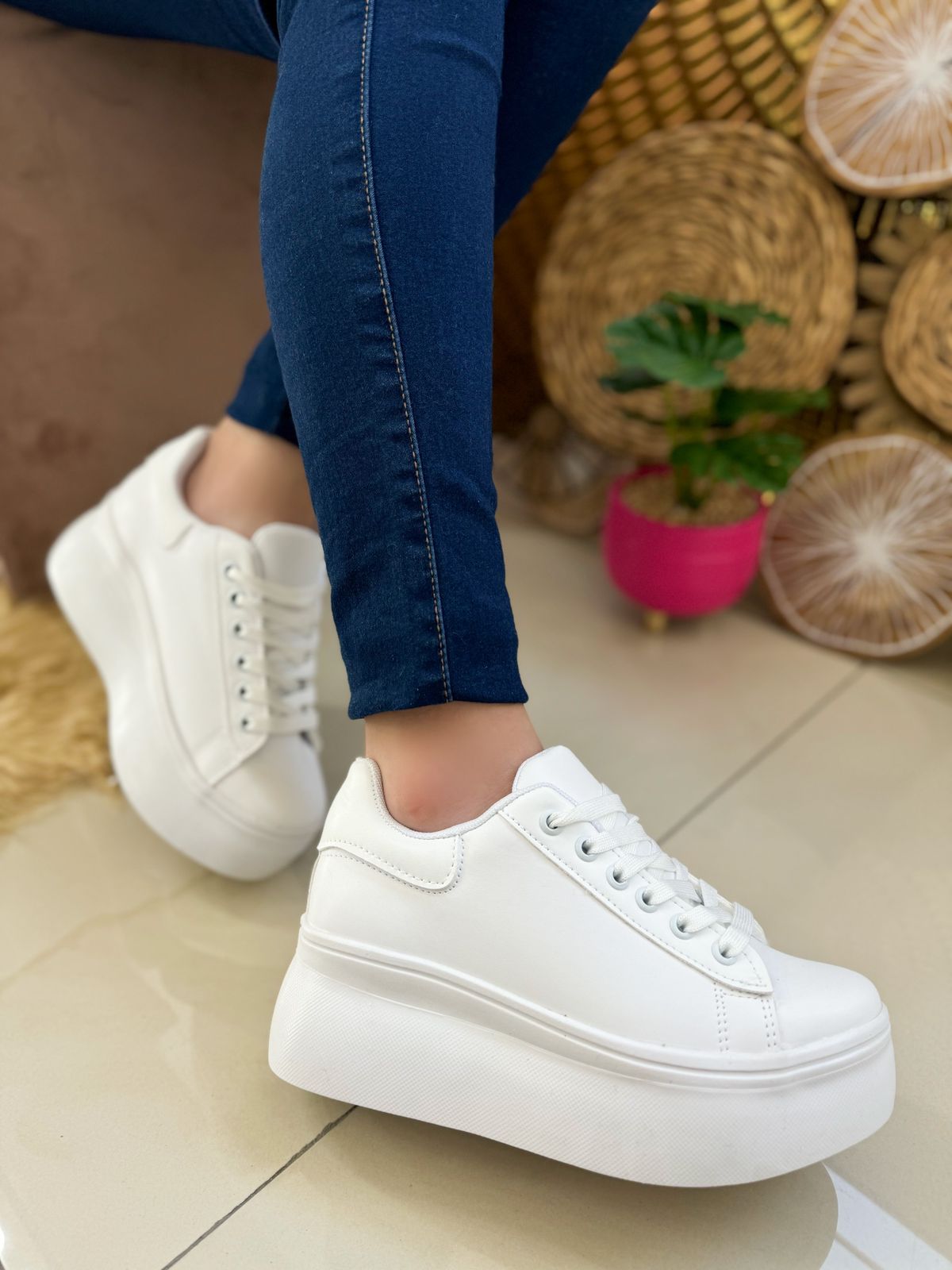 ¡Dale un giro moderno y fresco a tu estilo con estos tenis blancos de plataforma que te harán destacar en cada paso! ¿Lista para hacerlos tuyos?