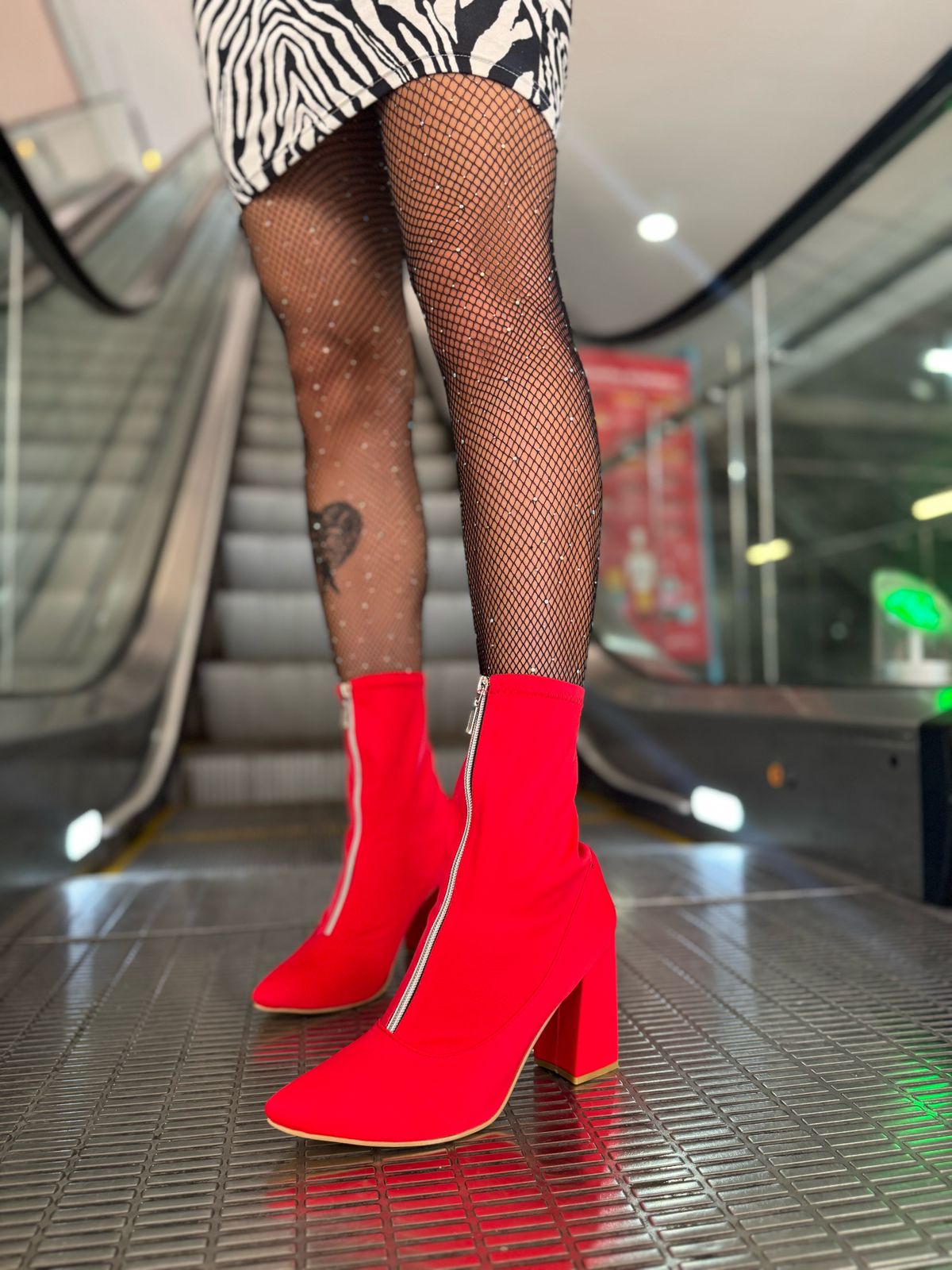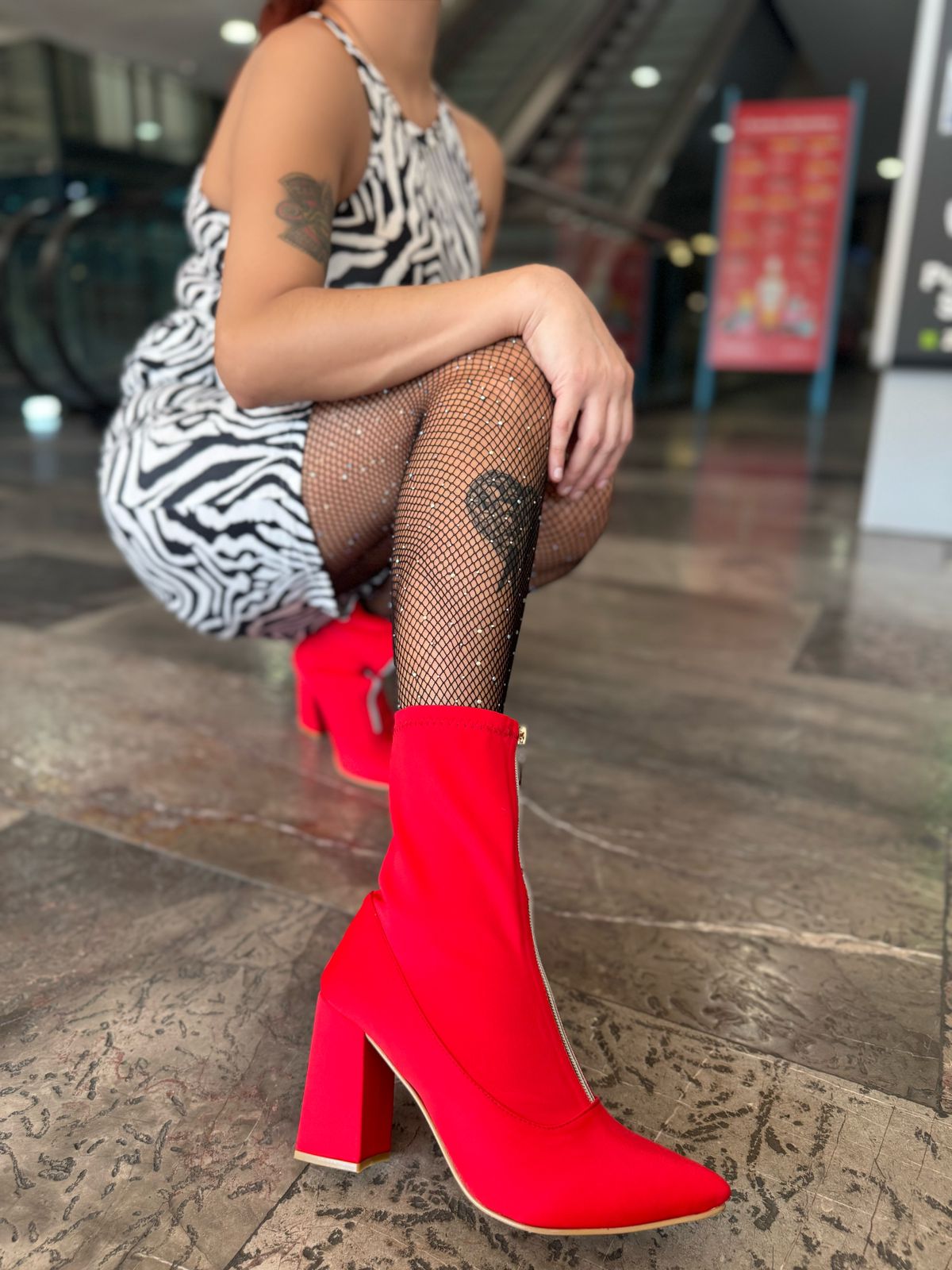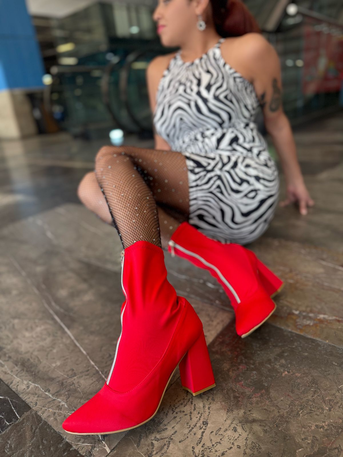 ¡Atrévete a destacar con estilo y confianza! Estos botines de licra son el toque perfecto de sofisticación y audacia para cualquier ocasión. Su diseño estilizado combina un vibrante color rojo con un ajuste ceñido que realza tus piernas y aporta un aire moderno y elegante.