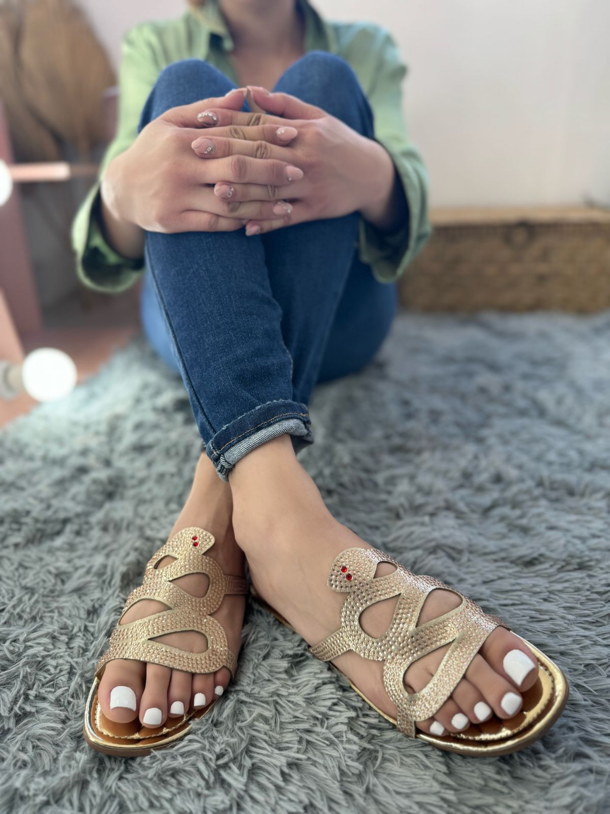 ¡Luce elegante y sofisticada con nuestras sandalias SNAKE! Con un acabado dorado y brillante, estas sandalias son perfectas para cualquier ocasión, desde una cena elegante hasta un día en la playa. ¡Hazte notar con estilo y comodidad con SNAKE!