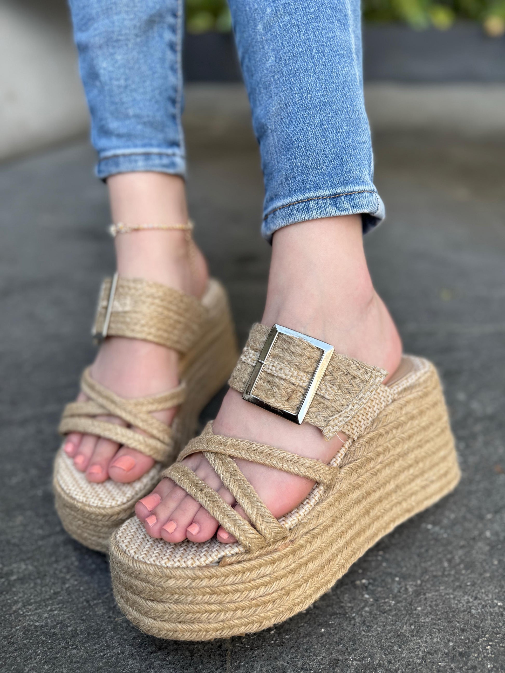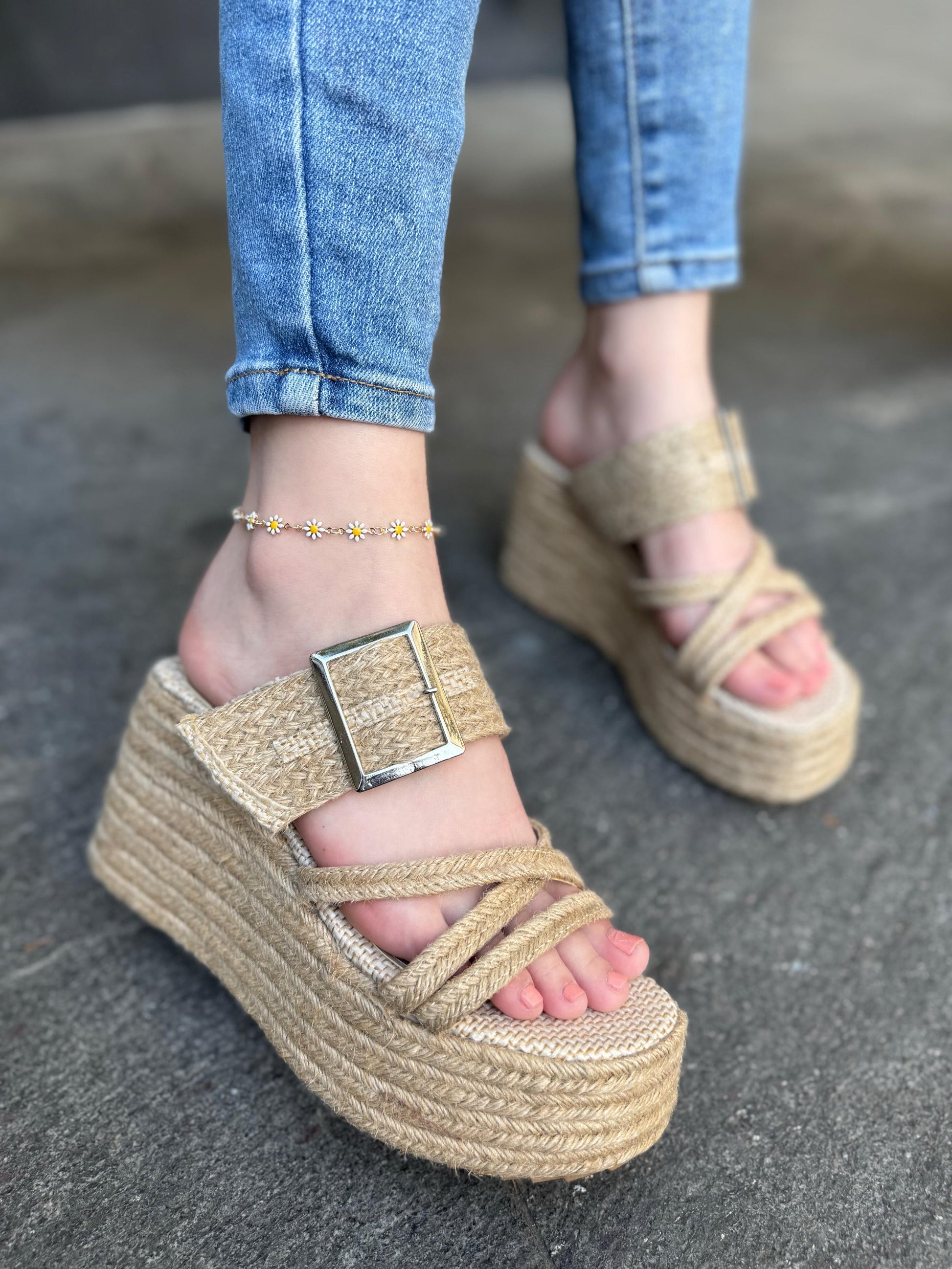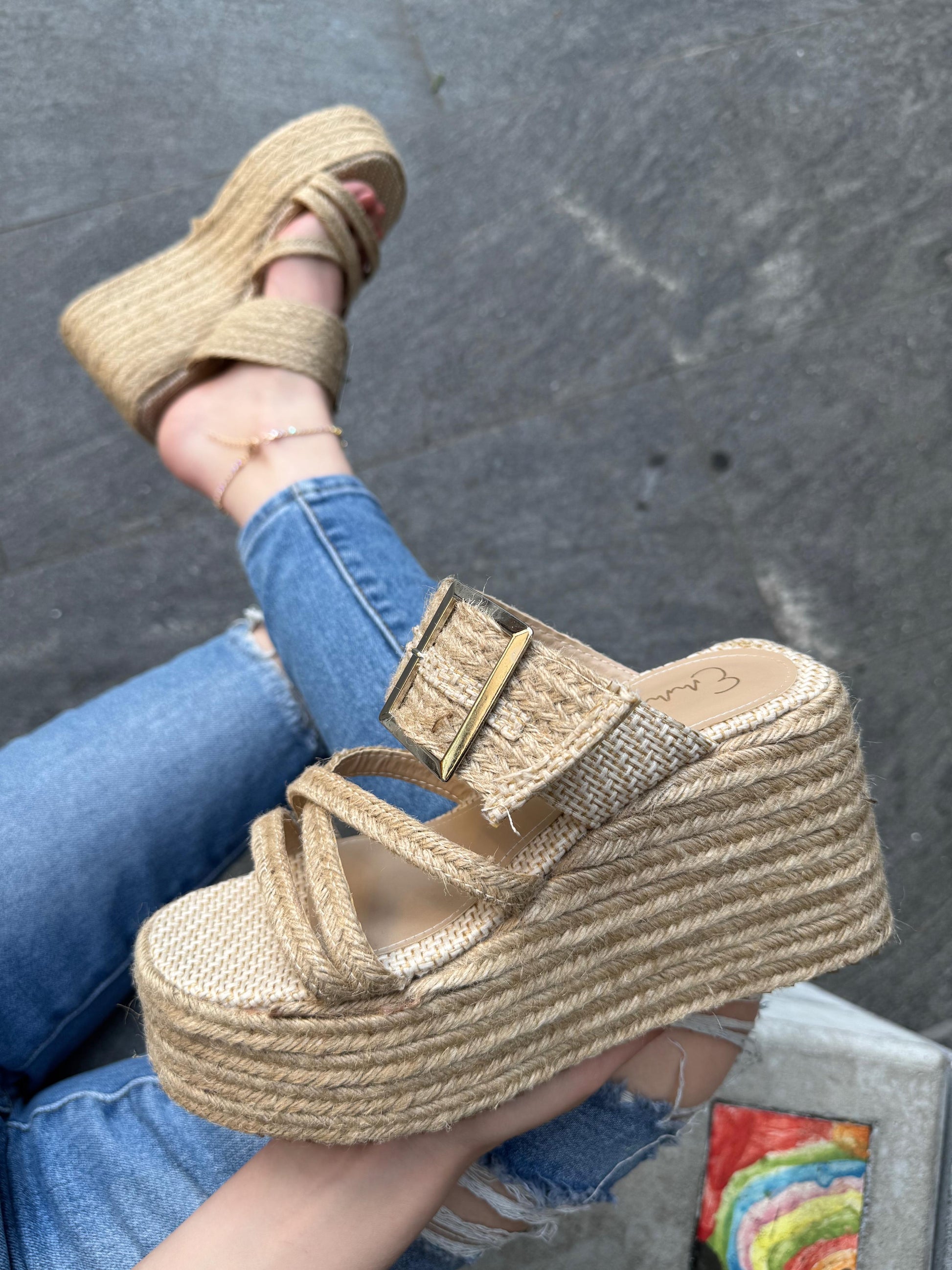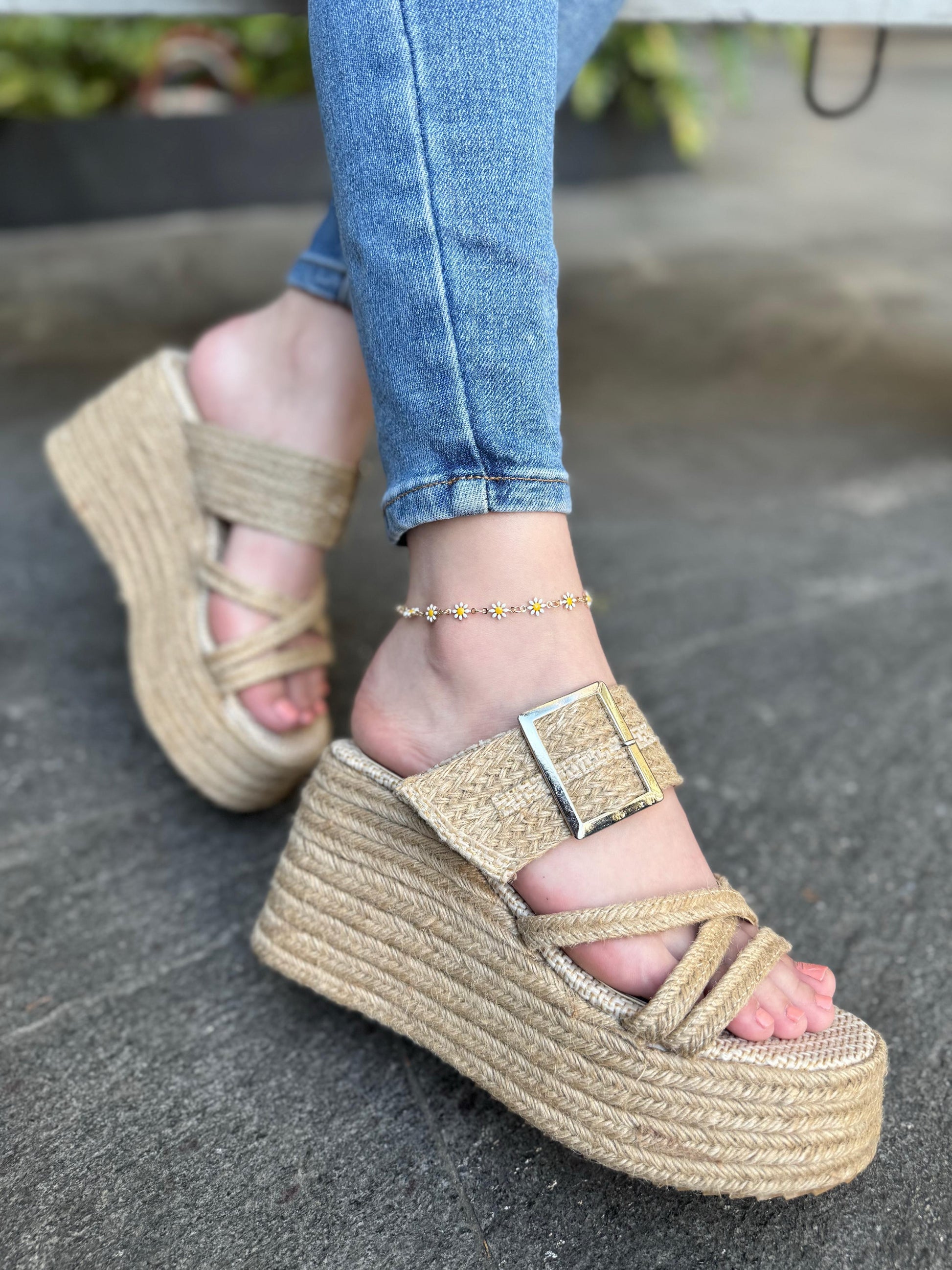 Si buscas el balance perfecto entre altura, comodidad y un diseño boho-chic, estas plataformas de yute son la opción ideal para ti. Con una estructura artesanal y un acabado natural, elevarán tu estilo sin esfuerzo.